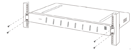 如图所示,将挂耳旋进机器前端并拧紧。同时请注意线缆长度,以使计算机,KVM切换器,键盘,鼠标,显示器保持适当的距离。