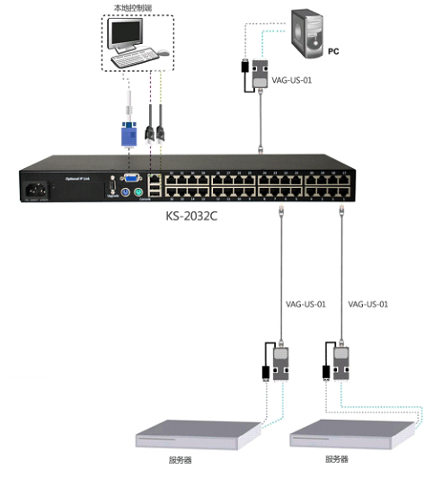 (2) 计算机/服务器安装(以KVM 2032C为例)