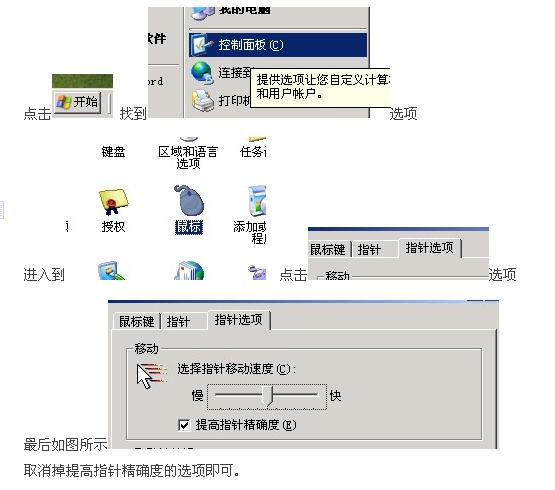 请确认Windows XP 的鼠标设定中“增强鼠标加速”的选项并未被开启。
