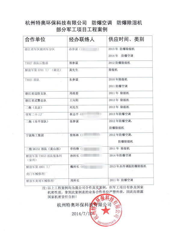 三、根据双方达成的技术协议,我公司所提供的防爆空调规格和参数如以下:防爆空调防爆机(以下简称空调机)是根据GB3836.1-2000《性气体用电气设备第1部分:通用要求》、GB3836.2-2000《性气体用电气设备第2部分:隔爆型“d”》、GB3836.4-2000《性气体用电气设备第4部分:本质安全型“i”》及GB3836.9-90《性用防爆电气设备浇封型电气设备“m”》的将室内或室外机组(或室内外机组全部)制成防爆结构,经国家授权的质量监督检验部门检验合格。