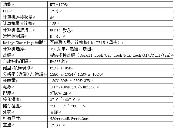 1.集17寸LCD液晶显示器的KVM控制端于单一抽拉式机身内