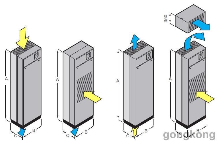 灵活的安装和送风:有无高架地板环境均可满足;上送风、下送风、水平送风均能实现;独立空调室或与IT设备共处都能解决。