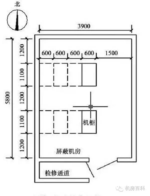 除此之外,还需要考虑预留施工防护空间,并尽量避免调整现有机房管路和屏蔽门体位置。以图1为例,在同等条件下,应该优先考虑将机房向东侧和北侧扩展。因为南侧是机房屏蔽门体和检修通道,向南扩展需要将其拆除后重新安装,施工难度较大,特别是屏蔽门体本身是屏蔽机房最重要的防护部位,一旦重新安装后屏蔽效果降低,会对机房整体屏蔽效能产生较大影响。如果向西侧扩容,拟拆的墙体紧贴机柜,在实施过程中缺少施工作业面,不利于对现有设备的防护。因此,在制定扩容方案时需要综合考虑各种因素,在满足建设目标的前提下,尽可能减少投资,降低实施难度。
