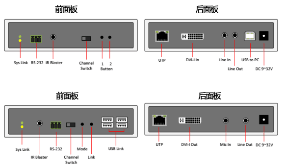 DVI-I 接口发送端,支持USB 接口键鼠,支持USB 2.0 ,支持连入交换机 |