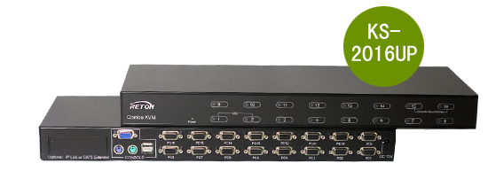 RETON机架式KVM切换器,KS-2008UP & KS-2016UP 8/16端口被控端混接设计、符合1U标准,置于机架中使用。既节省空间,又易于管理。管理员通过一套控制端界面控制多台服务器。