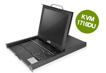 典型的16口LCD KVM型号有KVM-1716AU(17寸16口LCD KVM)。