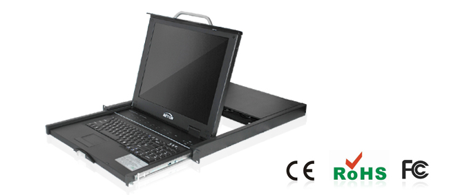 液晶KVM是整合了键盘、鼠标、液晶显示器及多端口KVM切换器功能于1U高度空间的控制平台。例如,型号1708AU集成了8口KVM切换器、17寸KVM液晶显示器、键盘及触摸鼠标;其供电方式为220V交流供电;分辨率1280*1024(标屏)或1440*900(宽屏),折叠后只有1U高度 ,是最常用的机房KVM。