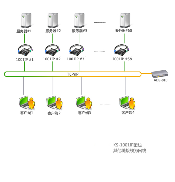 计划每一台服务器配置一台RETON KS-1001IP计算机接口模块,整个KS-1001IP集群通过ADS-810进行集中管控,进行权限划分,日志审计。这样的话就可以实现6人同时通过IP的方式管理服务器,实现BIOS级别的操作。